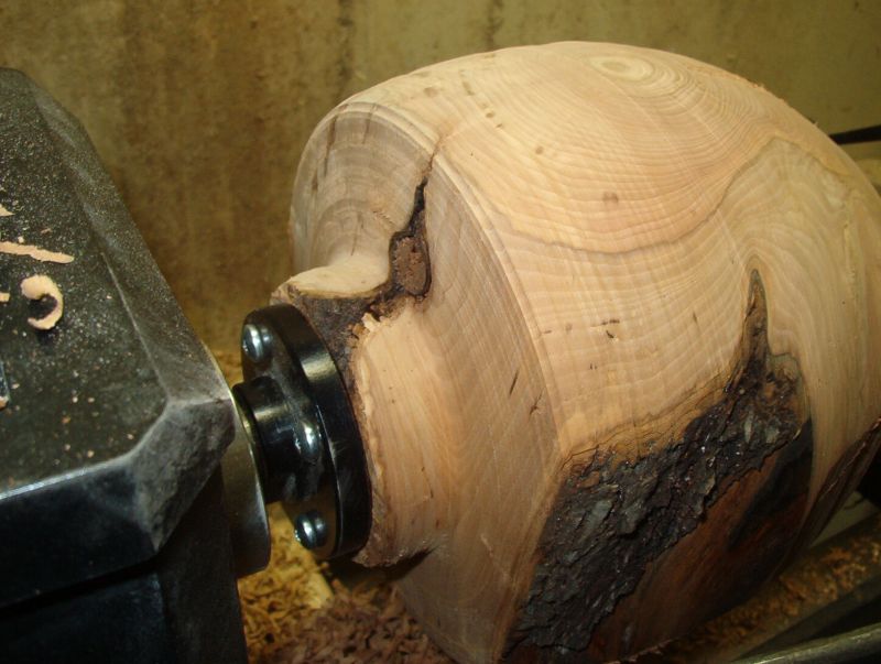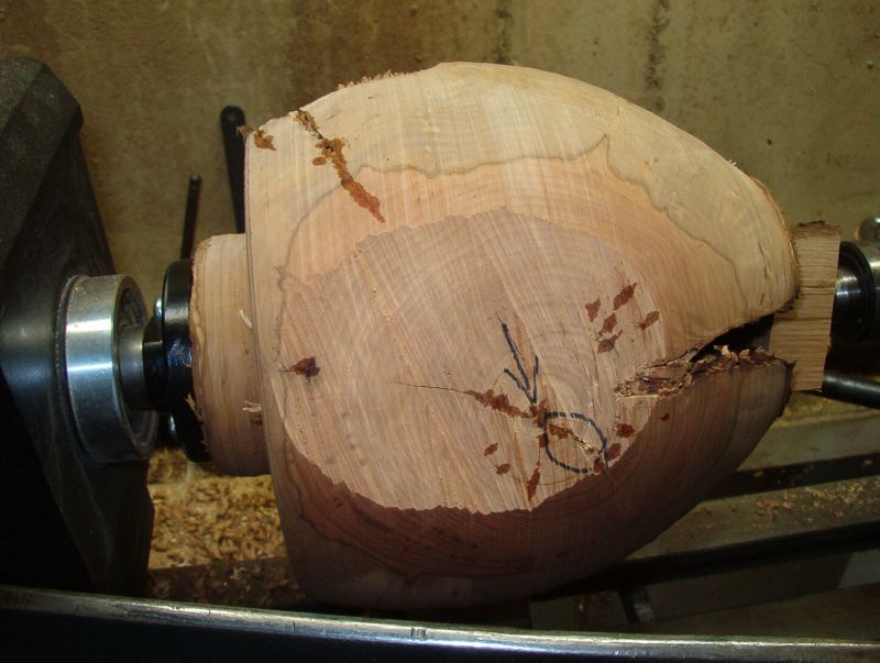 There is still a lot of wood to be removed as can be seen from the flats. Also, there is a fair bit of cracking around the pith. Something to look out for as I proceed.