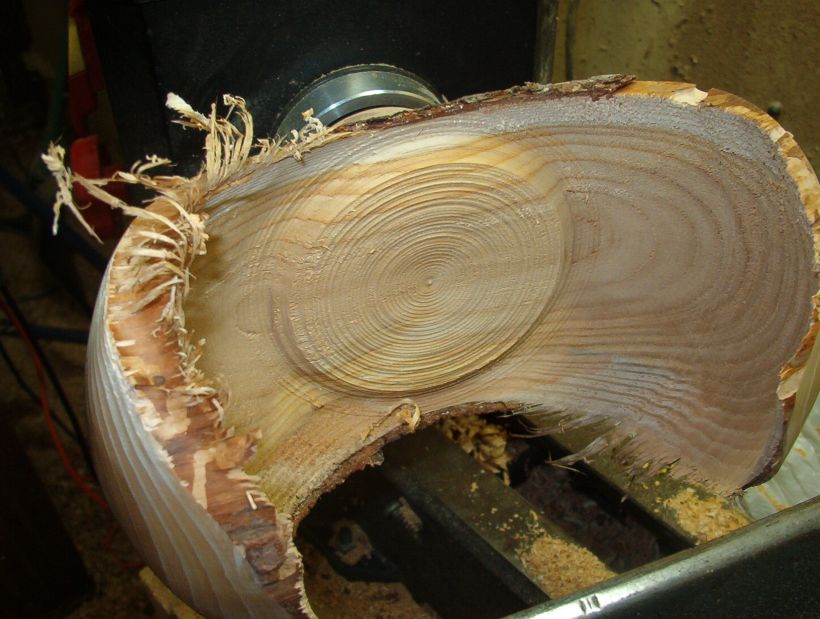 The upper edge has been cleaned up somewhat with the 45° tool and the bottom is closer. Note the insect damage about 1/3 of the way up on the edge. It is filled with fine powder from the larvae.