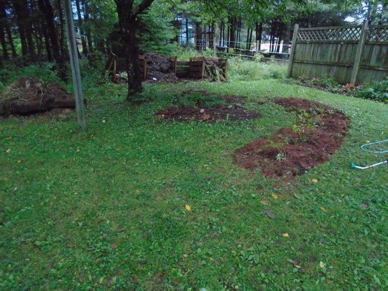 The new shrub bed gets dug and the first of the forsythia planted in their new home
