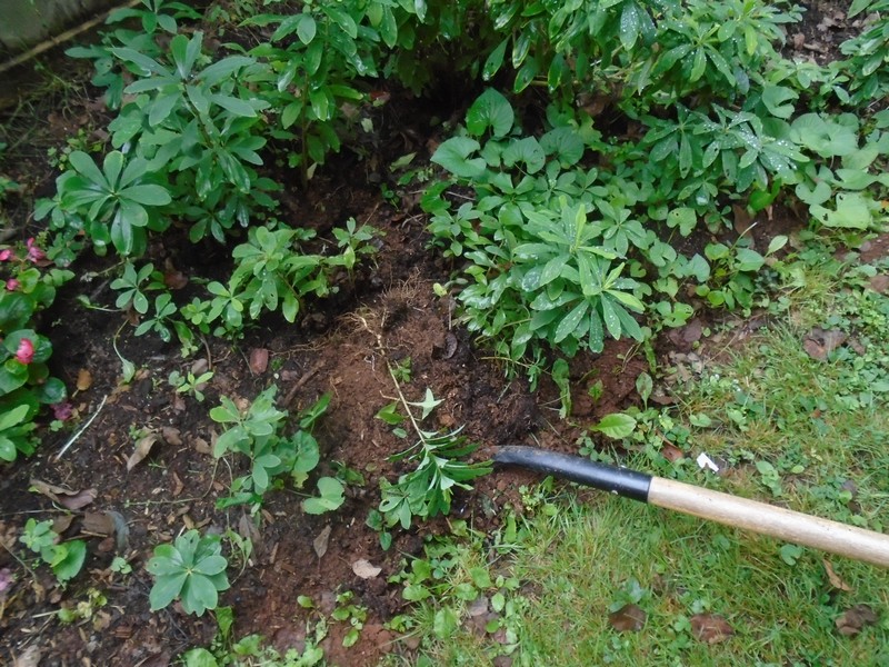 What I have found in the past is these plants do not develop a heavy root system when young and transplant easily. In fact, if you stick a branch in the ground and keep it watered it will root in a couple of weeks and grow on. So I start by sticking a shovel in the ground and levering to loosten the plants.