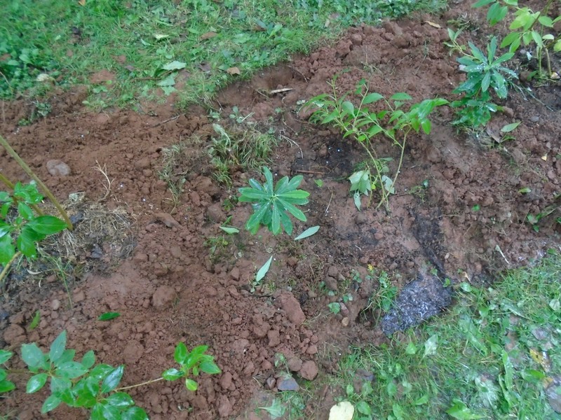 Meanwhile the gardening goes on. I repair the bed around the daphne by replacing the soil that was disturbed in the moving of the plants. This bed will need a good coat of compost in the near future as well.