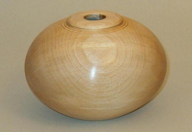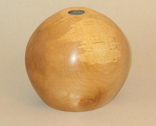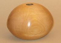 Three hollow forms in yellow birch. The difference between a vase and a hollow form to a wood turner is somewhat nebulous. In general, a hollow form is turned with the orientation of a bowl but hollowed through a small opening while vases are usually oriented with the grain running the same way the tree grew and have a larger opening. Like most things in wood turning, it is open to opinion and argument. Sizes range around 4" diameter and 3" high although each has moved distinctly oval in drying.