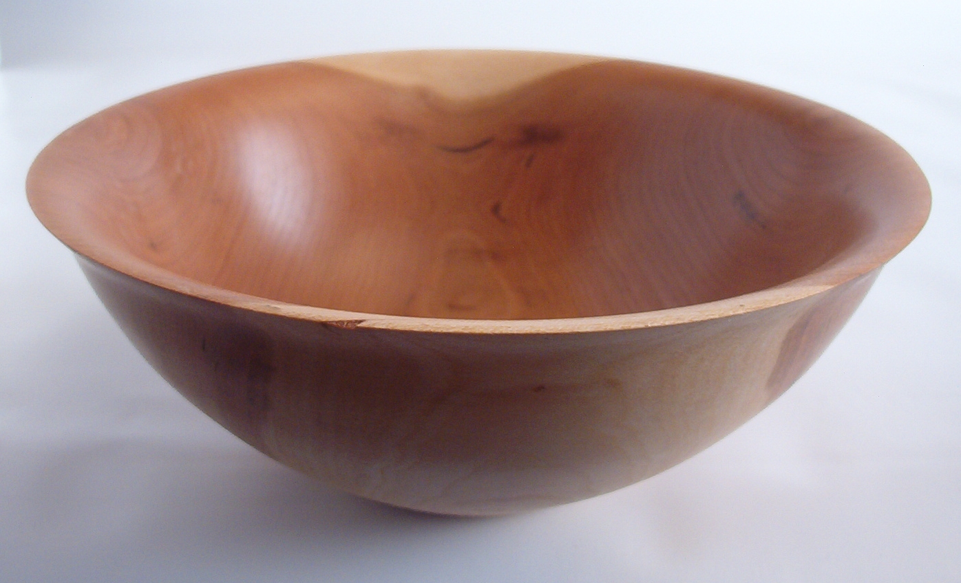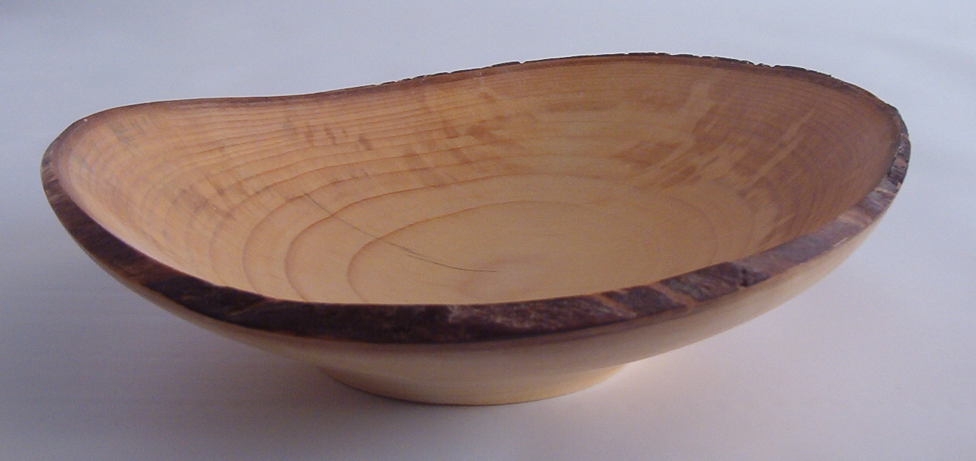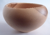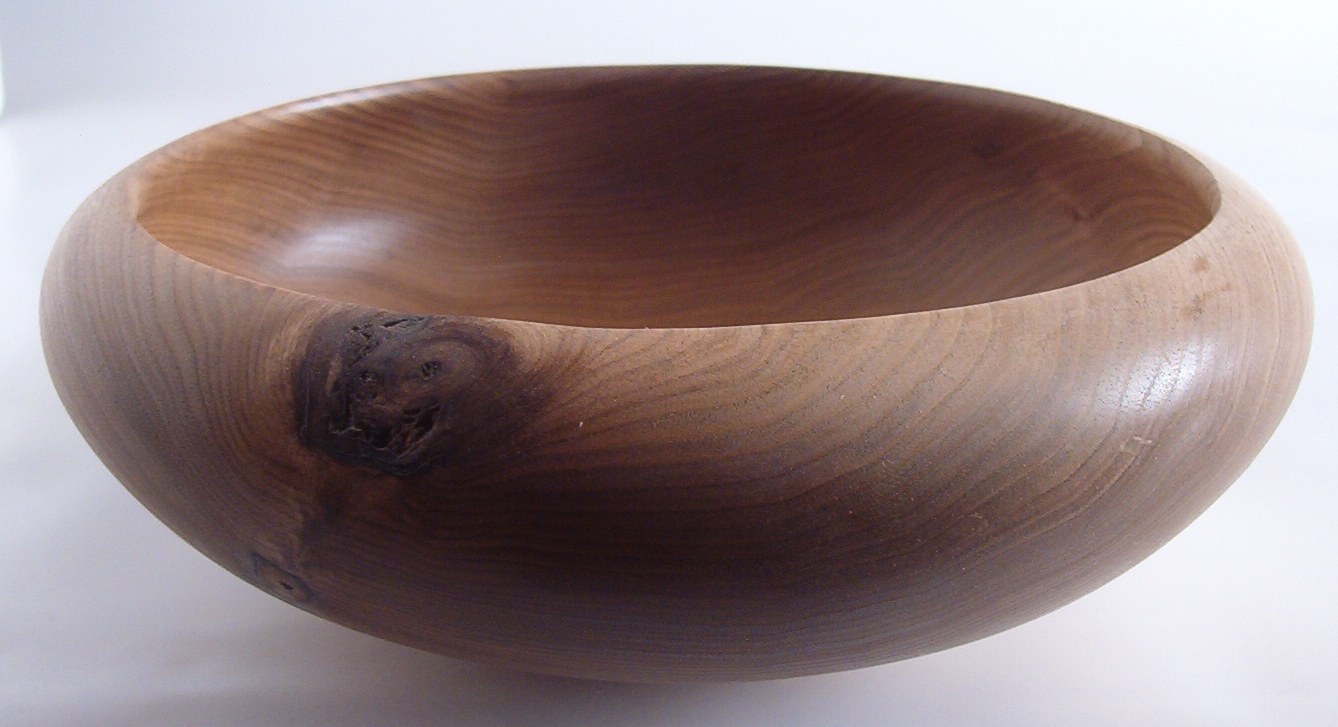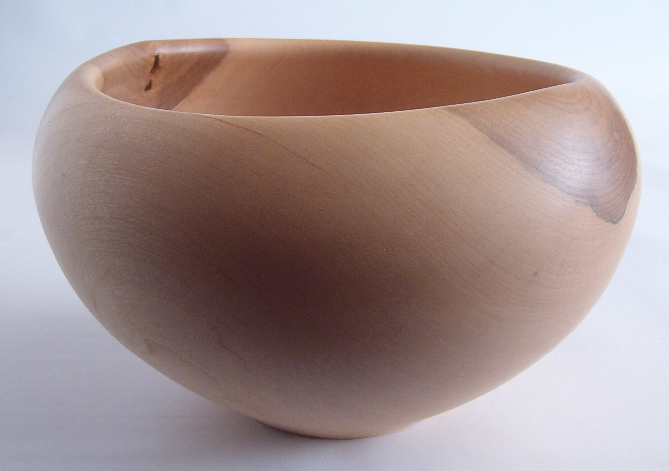 A fairly heavy bowl turned from green wood and allowed to go oval.