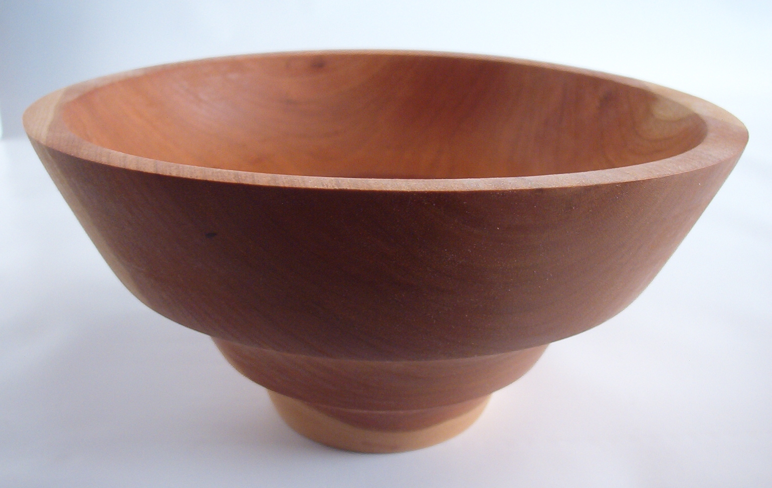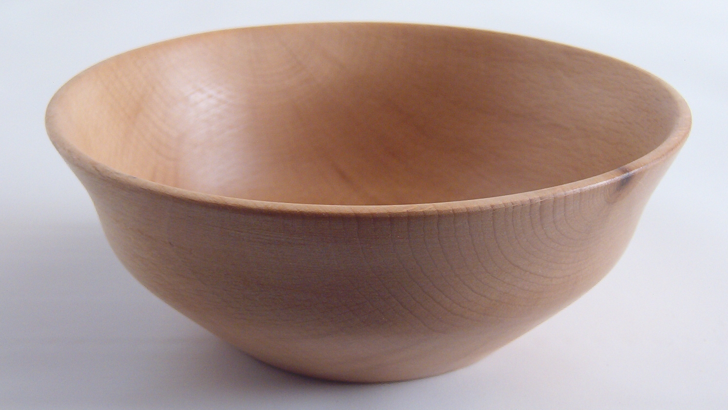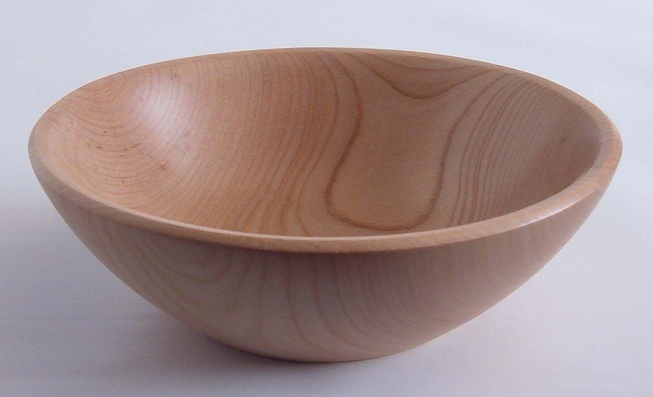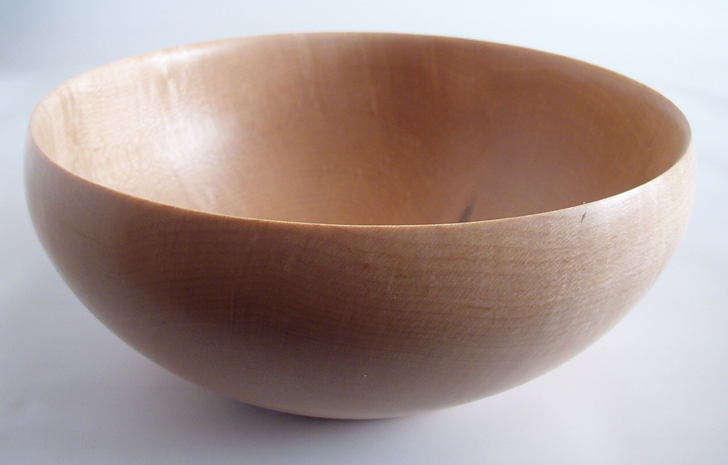 A fairly heavy bowl turned from green wood and allowed to go oval.