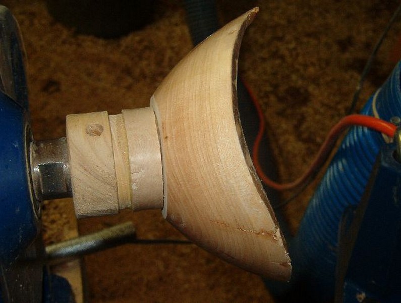 With the outside of the bowl trued up and the from established I begin to remove the escess in the interior. Generally I cut down about an inch at a time and then blend the areas together. Especially at the edges of a piece like this there is little support for the ends except for the next wood into the bowl and the rim is not a complete circle.
