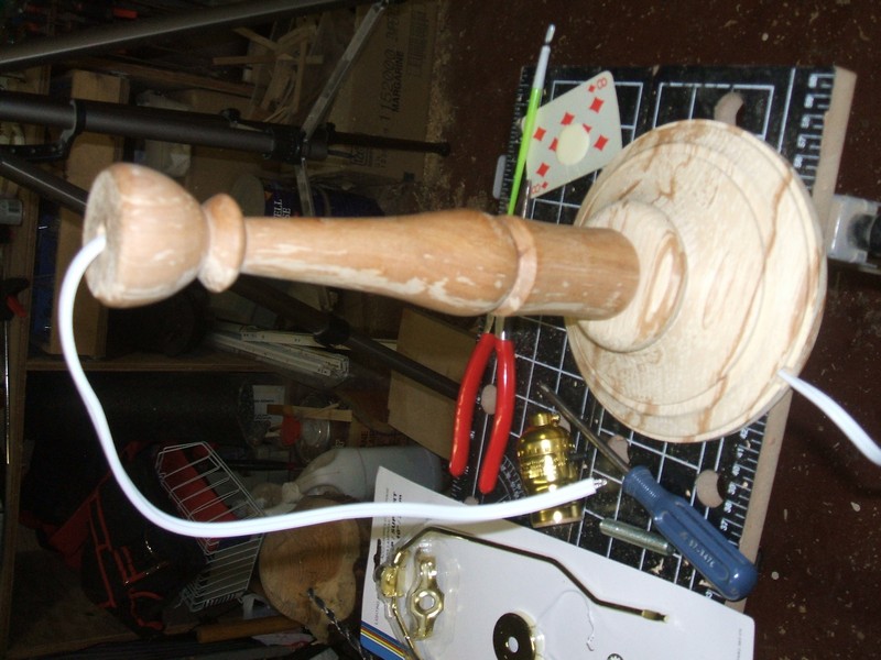 Drill a 1/2" hole in the center of the base to intersect with the wire hole from the side.