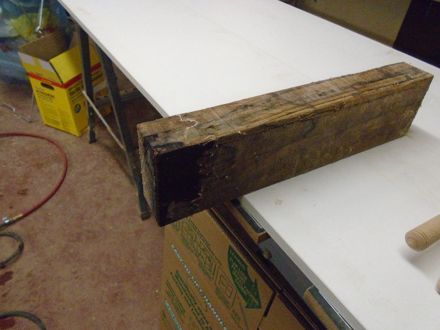 This is a block from a packing crate that was rescued by a friend of mine while at work. The crate was being cut up for the trash. It is some rosewood relative. I have given my friend a pen from this wood. It needs to be cut around the nail holes but is sure worth it. The wet end is hanging off the table.