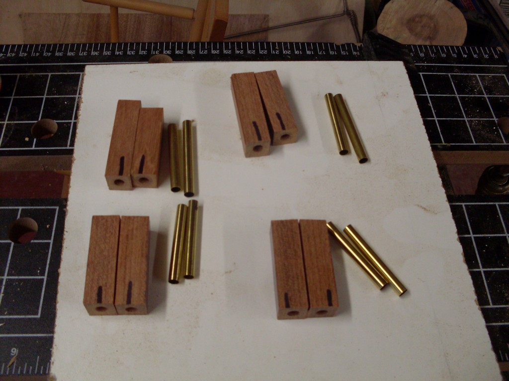 Each set of blanks is assigned its brass tubes for gluing. You may wisg to sand the outside of the tubes for better gluing adhesion. I have not found this necessary but opinions vary and I am in the minority in this. I also tend to use polyurethane glues while others prefer CA. It can not hurt and it only takes a minute.