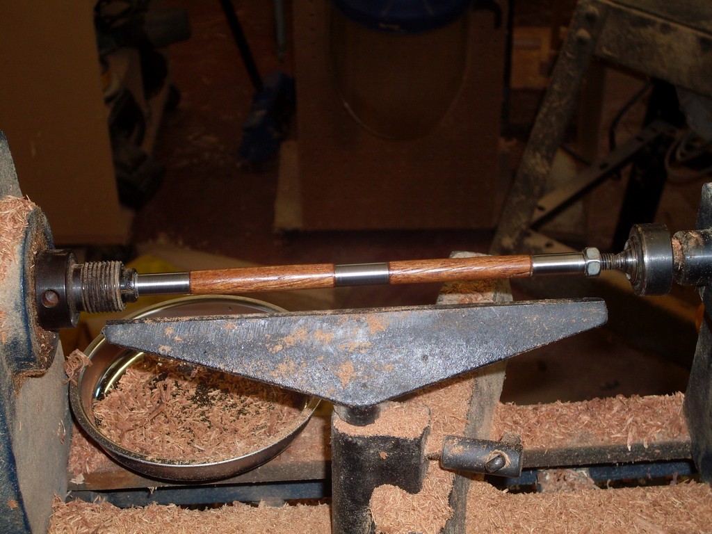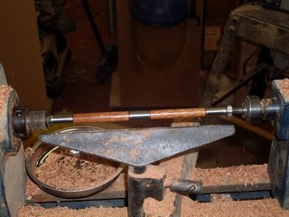 To start I clean the blanks as the lathe spins with a piece of toilet tissue and mineral oil. This is highly controversial but it works for me. These blanks on the lathe have just been cleaned and the excess dried by fast turning while rubbing with dry toilet tissue. If toilet tissue catches in a fast turning lathe, it rips. If cloth catches on a fast moving lathe it pulls your hand in. Your choice what to use.