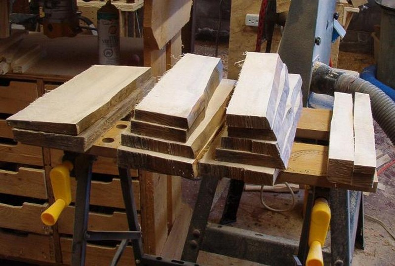Here we have the finished boards, ready for drying. Those two on the left are the first two side cuts. They are somewhat uneven in thickness but will make some turnings. The ones on the far right should make a couple of spurtles. Middle ones will be stacked for drying and eventually cut for spatulas. I will likely get 13 to 15 spatulas from the pieces. To dry them I just stack them in the shop with popsicle sticks between them for air spacers. The ends are already sealed because the log was sealed on both ends before I started to cut. Next, back to the bowls