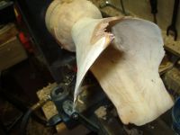 Looking at the interior I decide to not sand the interior to the bottom. this is one of those places where people simply disagree. Some would sand the interior to the bottom "just because" while others like myself generally leave it alone. A friend of mine used to say that hollowing a vase was too much work and just cleared as much of the interior as he could with a Forstner bit. He did nice work.
