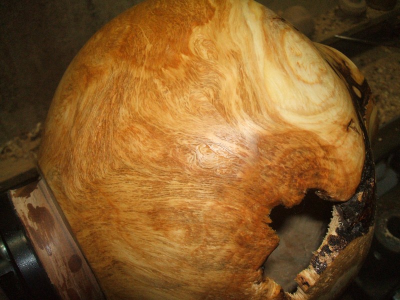 I use a blunt cone at the head stock to hold the burl in place. Turn one that fits the opening and has a gradual slope. A steep cone will act as too strong a wedge and may split the neck of the vase. I use a piece of "fun foam" to pad the opening.