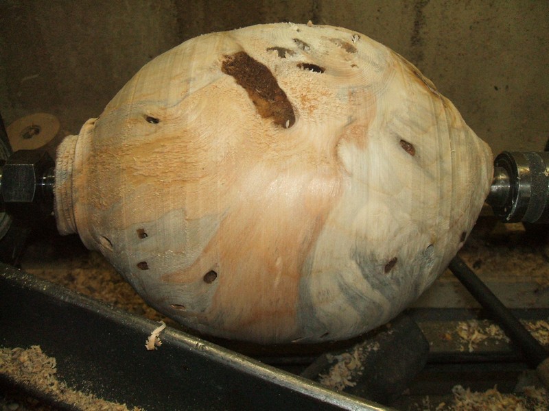 A bit of a trim with a chisel and a waste block and face plate were ready to be epoxied in place. I find that epoxy gives me a safety edge in these softwood burls and is no harder to remove than other glue blocks.