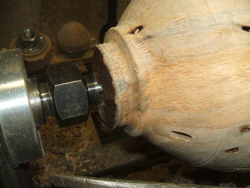 Exciting times can happen when least expected. As I was coning the tenon and flattening the base, a chip came up and hit me on the face shield. There was no catch so I must assume a fault in the wood. Again this is not uncommon on a burl. Always wear a face shield! Thankfully, the vase stayed on the lathe.